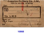 - 10868 Wagon Label 1940s Coppice Coll to Oldbury Coppice Collieries 10346