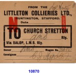 - 10870 Wagon Label Littleton Colliery to Church Stretton Littleton Colliery 10346