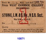 - 10871 Wagon Label 15-1-1934 West Cannock to Stone West Cannock Colliery 10346