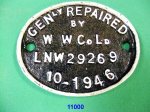 - 11000 Wagon plate LNW 29269 10-1946 – Gen Repair – oval – 5″x 4″ WW Co.Ltd. C19