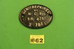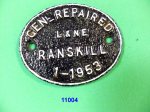 - 11004 Wagon plate 1 1953 – Gen Repair – oval – 5″x 4″ L and NE Ranskill C19