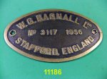 - 11186 Works plate 3117-1956 Std Gauge 208 HP 0-6-0DM W.G.Bagnall Ltd