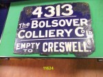 - 11624 Wagon plate 4313 Empty to Cresswell 24″x 17″ Bolsover Colliery Co. U2
