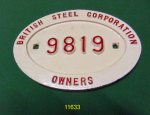 - 11633 Wagon plate Oval British Steel Corporation – Owners No. 9819 9.5″x 6.75″ BSC P2