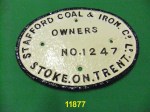 - 11877 Wagon owner’s plate Stafford Coal & Iron Co.11.5″x 8.75″ No 1247 Stoke-on-Trent Stafford C&I Co.Ltd. P2