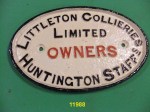 - 11988 Wagon owner’s plate Littleton Collieries Ltd, Owners, Huntington, Staffs 11.75″x 7.25″ Littleton Colliery P2