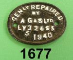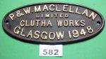 - 582 Wagon plate ‘P.& W.Maclellan Ltd., Clutha Works, Glasgow 1948 P.& W.Maclellan Ltd. C16