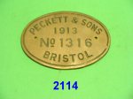 - 30 Works plate Peckett and Sons Bristol 1902 No.917 Unknown C16