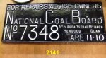 - 10705 Manufacturer’s plate 5.9″x 2.9″ Property of the National Coal Board NCB Barry’s Bag