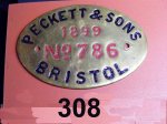 - 308 Works plate Peckett 786/1899 Ex No.3 ‘Progress’ Peckett C1
