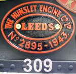 - 309 Works plate Hunslet 2895/1943 Ex NCB Granville Colliery Hunslet Engine Co. C16