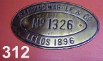 - 312 Works plate Manning Wardle 1326/1896 Manning Wardle C1