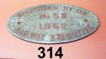 - 314 Registration plate 53/1952 Ex Hunslet 6-coupled ST 1685/1931 ‘Nuttall’ Railway Executive C1