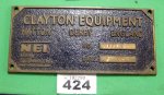 - 424 Works plate Clayton – Ex narrow gauge battery locomotive Clayton Equipment C11