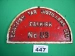 - 447 Wagon plate Scottish Tar Distillers Ltd., Falkirk. No.113 Scottish Tar Distillers Ltd. SC19