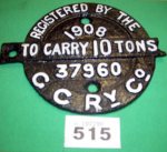 - 515 Wagon registration plate GCR 37960. To carry 10 tons GC C19