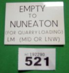 - 521 Wagon Label ‘Empty to Nuneaton for quarry loading’ BR C19