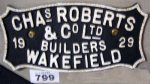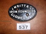 - 537 Builder’s plate J.M.Butt & Co., Ironfounders, Gloucester J.M.Butt & Co., Ironfounders, Gloucester C17