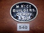- 540 Wagon plate M.R. & Co., Builders, Derby Mid C17