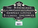 - 581 Wagon plate The Birmingham Railway Carriage & Wagon Co.Ltd., The Birmingham Railway Carriage & Wagon Co.Ltd SC19
