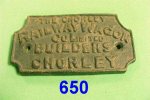 - 650 Wagon plate Chorley Wagon Co. Ltd., Builders Chorley Wagon Co. Ltd., Builders SC19