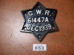 - 653 Wagon plate Six pointed star – No.61447A GWR C16