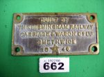 - 662 Coach plate Built by Birmingham Railway Carriage & Wagon Co.Ltd., The Birmingham Railway Carriage and Wagon Co.Ltd. C18