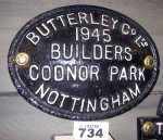 - 734 Wagon plate Butterley Co. Ltd. 1945, Builders, Codnor Park, Nottingham Butterley Co. Ltd. W3