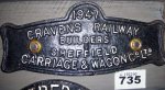 - 735 Wagon plate 1947 Cravens Railway Builders, Sheffield Cravens Railway Builders W3