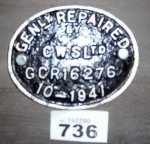 - 736 Wagon plate Generally repaired by CWS Ltd GC W3