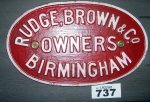 - 737 Wagon plate Rudge, Brown & Co., Owners, Birmingham Rudge, Brown & Co W3