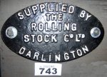 - 743 Wagon plate Supplied by the Rolling Stock Co. Ltd., Darlington Rolling Stock Co. Ltd., Darlington W3