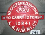 - 744 Wagon plate 10841 L & NWRly. Co. LNW W3