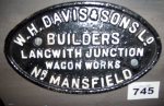- 745 Wagon plate W.H.Davis & Sons Ltd., Builders W.H.Davis & Sons Ltd., Builders W3