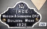 - 747 Wagon plate The Ince Waggon & Ironworks Co. Ltd. The Ince Waggon & Ironworks Co. Ltd., Builders, Wigan 1925 W3