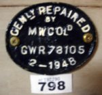 - 746 Wagon plate Generally repaired by WR Ltd. Mid W3