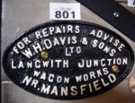 - 21 Locomotive nameplate Cannock Wood Unknown C1