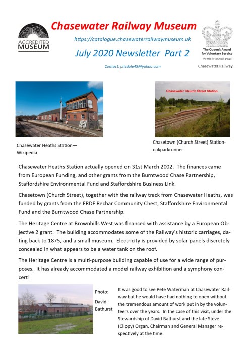 The line currently serves the Brownhills West end of the park, carrying passengers around Chasewater Lake – and across the lake on a recently rebuilt causeway – to a station opened 18 months ago in the Norton wildfowl reserve.