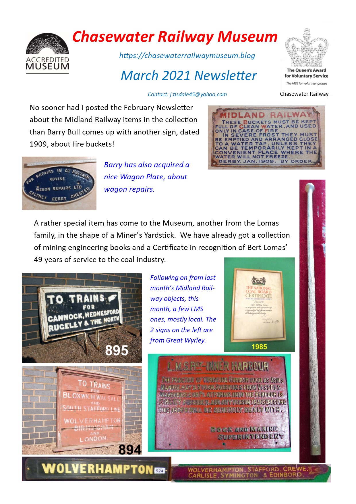 A lengthy letter has been received from Lichfield District Council in relation to the many matters which have been the subject of representations from the Railway since the Council became our landlords in 1993. The Board’s preliminary impression is that the Council has failed to recognise or appreciate our concerns and that response is wholly unsatisfactory. The Railway’s views will be communicated to the Council at an early date.