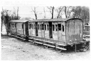 An early picture of two historic coaches prior to their restoration by the Midlands area Railway Preservation Society.