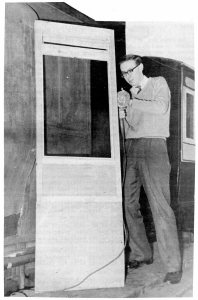 Mr. Frank Harvey, a member of the Midlands Area, Railway Preservation Society, made this door for the Maryport and Carlisle Railway coach now being restored.